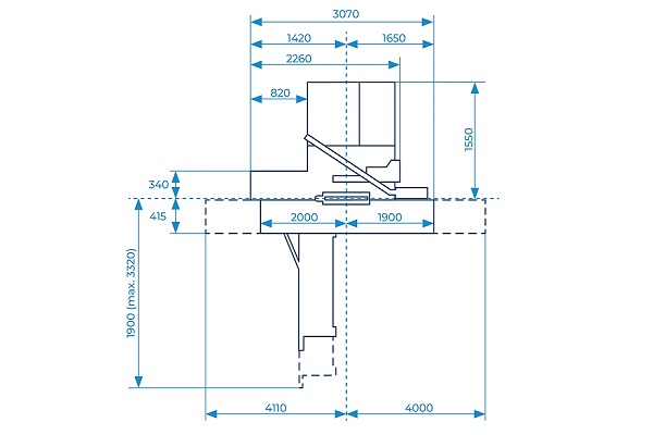 - Schnitthöhe optional 195 mm, bei Sägeblatt-ø 550 mm