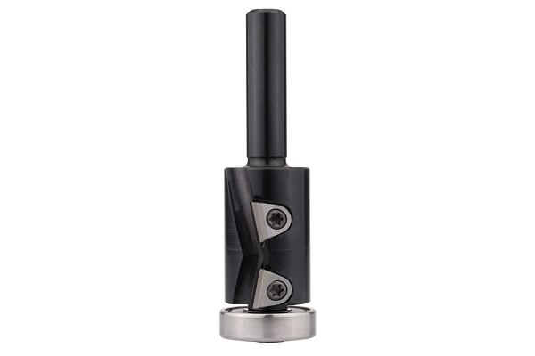 Konstantin Mini C166-1 DIA-Bündigschaftfräser für den Handvorschub auf der Oberfräse. Stabilder Wechselschneiden-Schaftfräser in Stahlausführung, geeignet zum Bündigfräsen von Schichtstoff- und Furnierüberständen.